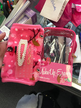 Full size black MakeUp Eraser with red & pink kiss print (measures 7. 5" x 15. 5”). Removes all makeup, including waterproof, with just water. Antibacterial, reusable, & machine washable (lasts 3-5 years/up to 1,000 washes).